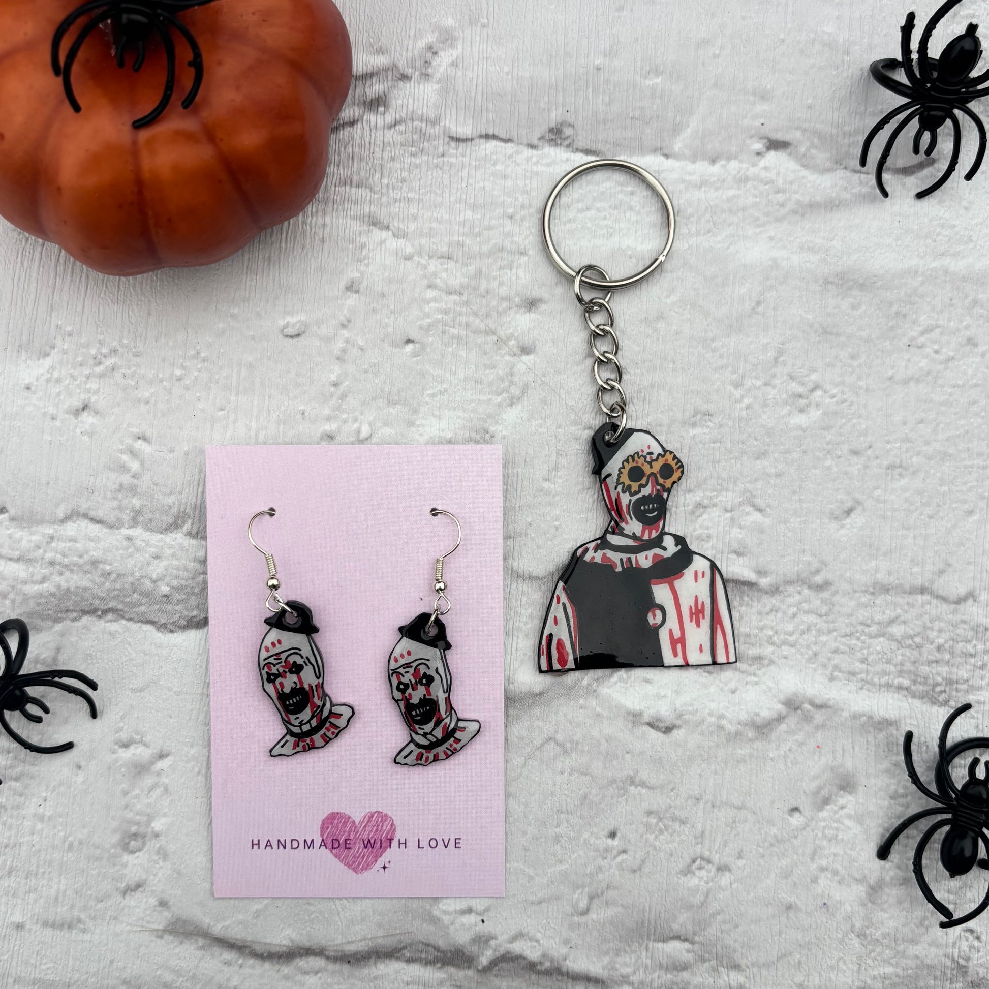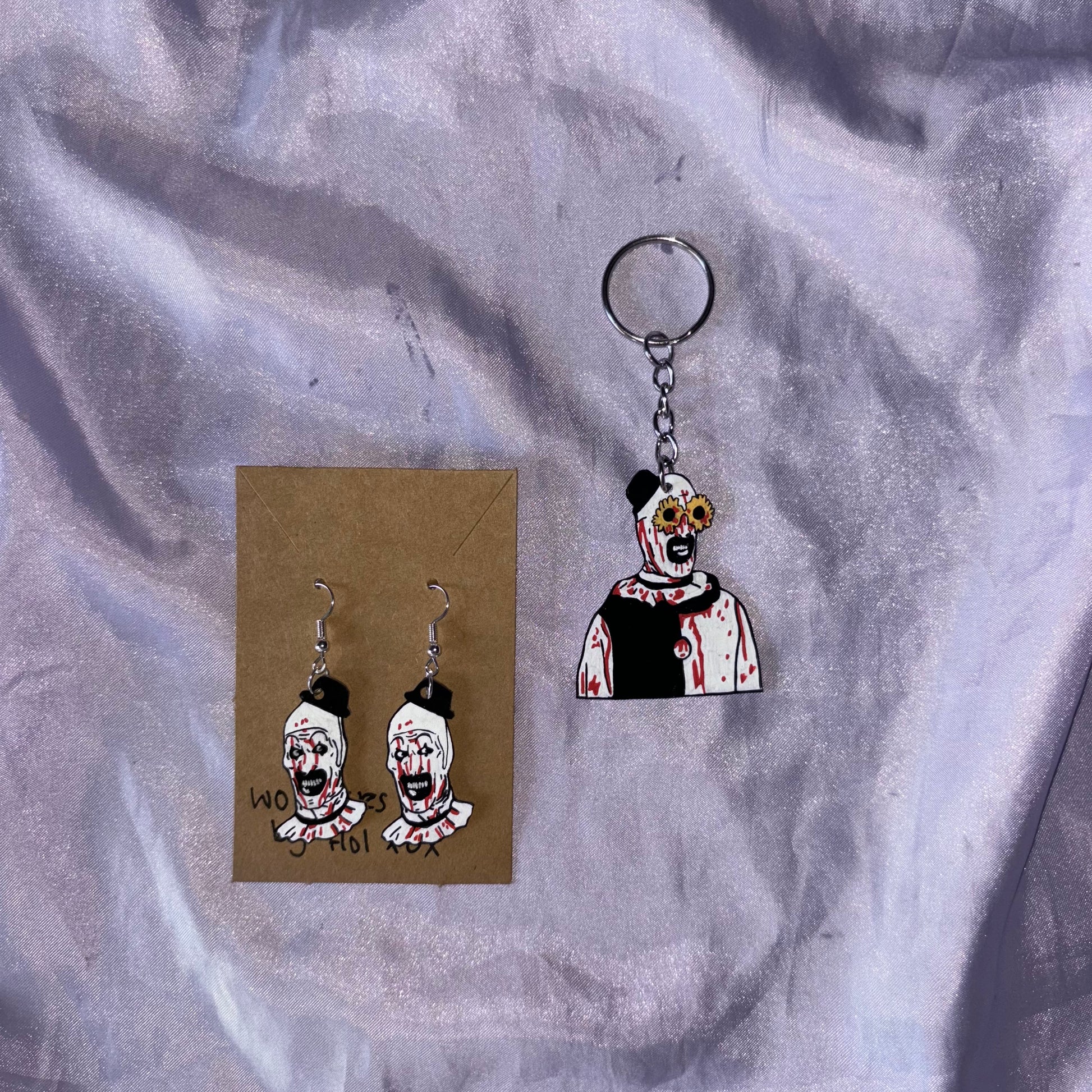 These earrings and keyrings are hand drawn so each one is unique! Each one is made to order! They are made with shrinky dink plastic and posca pens.