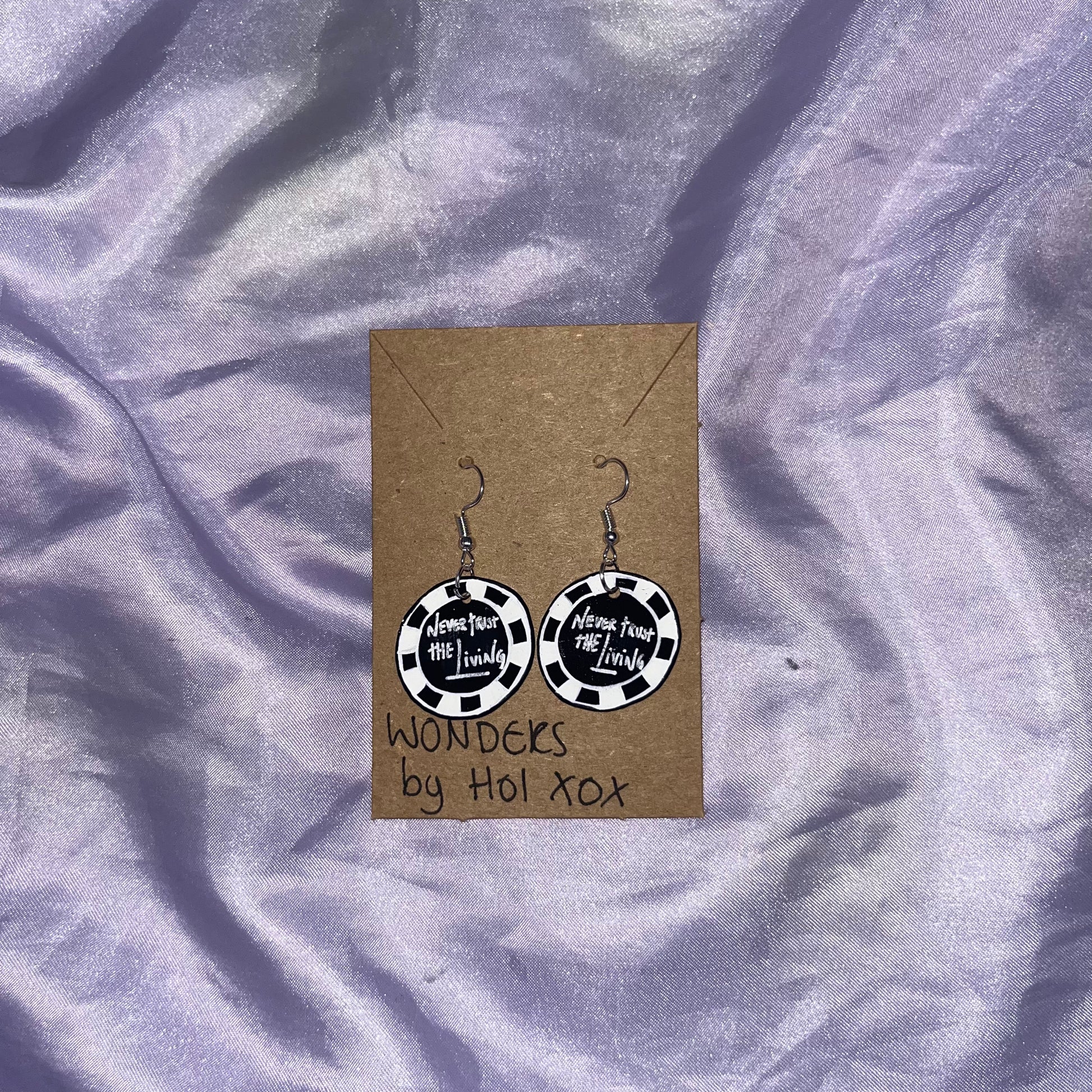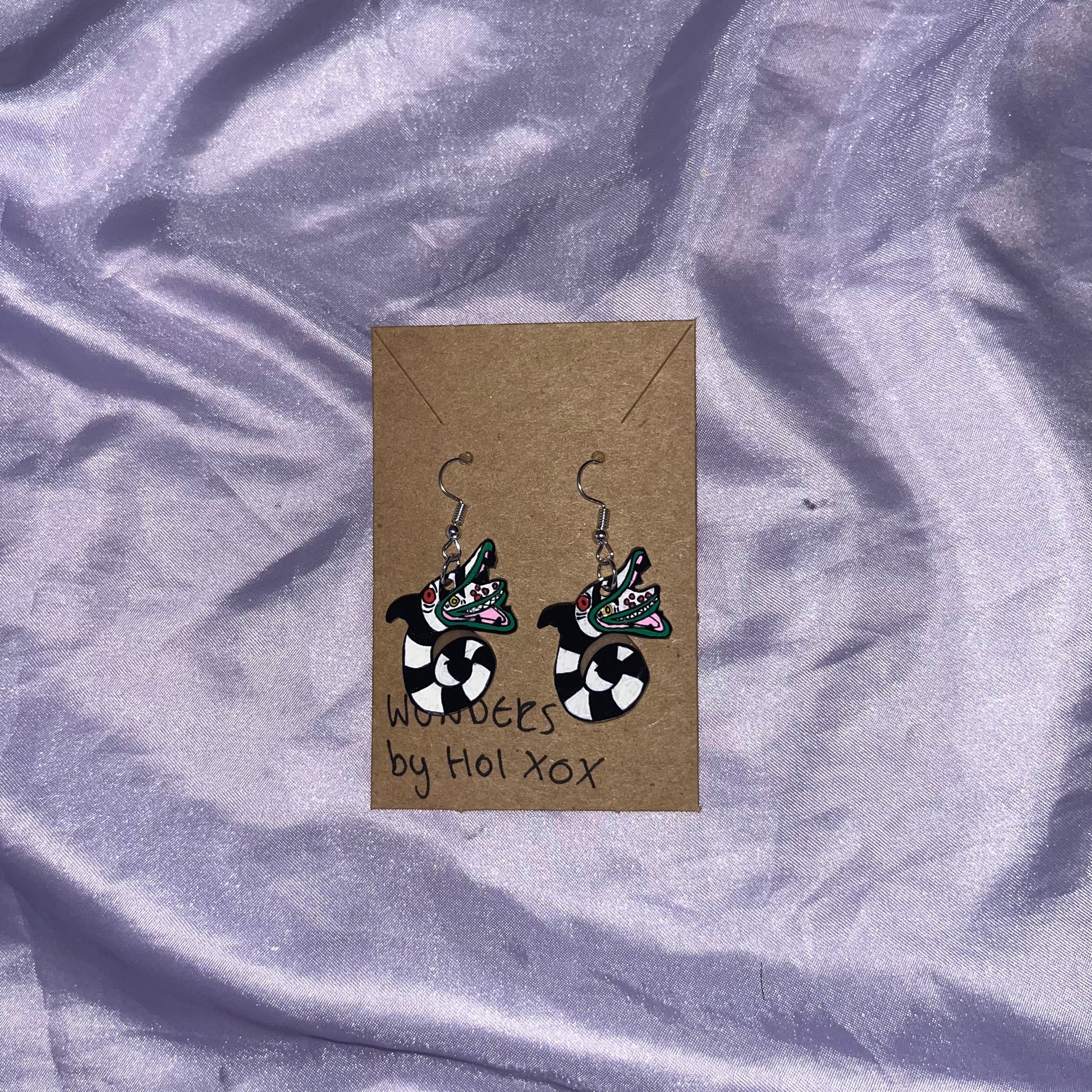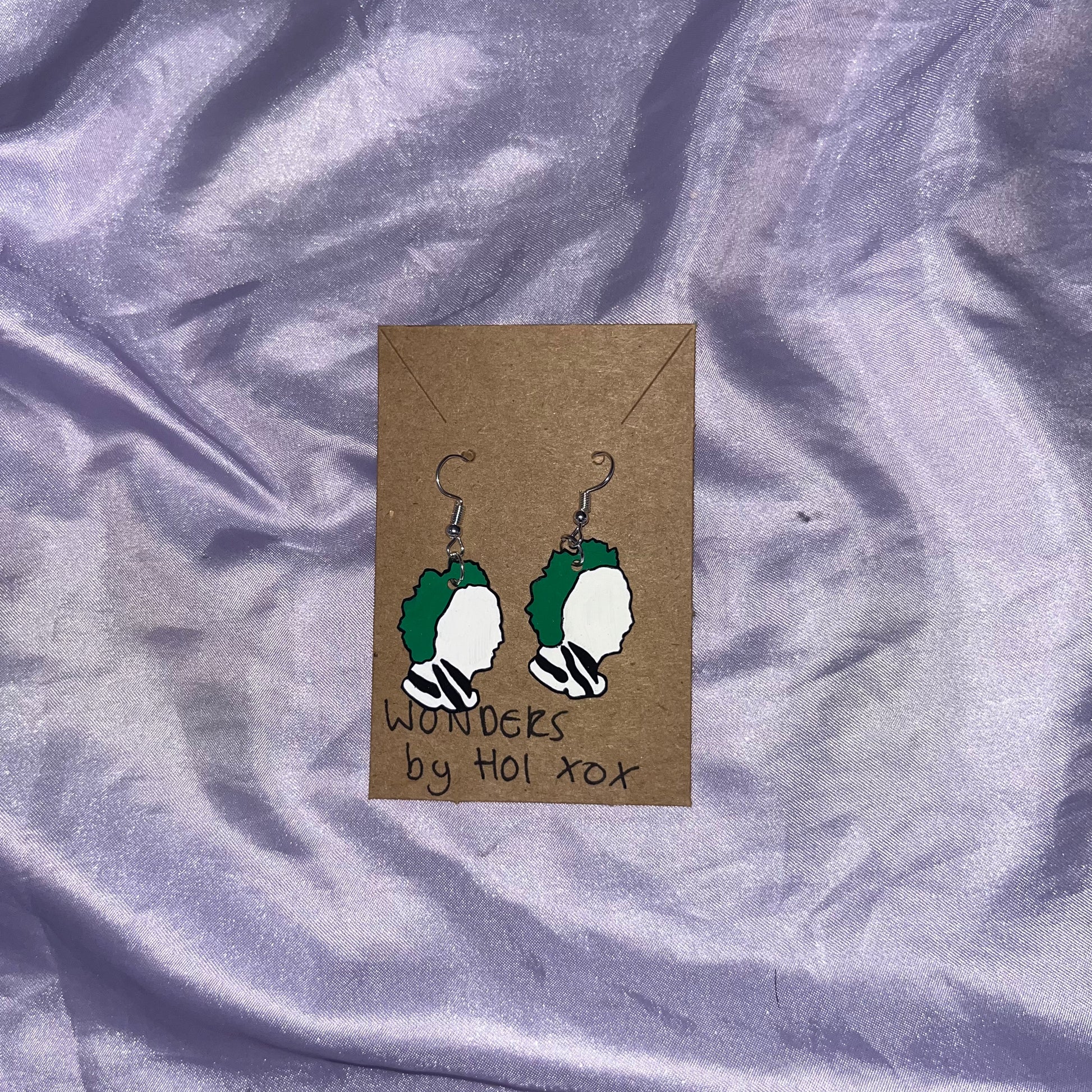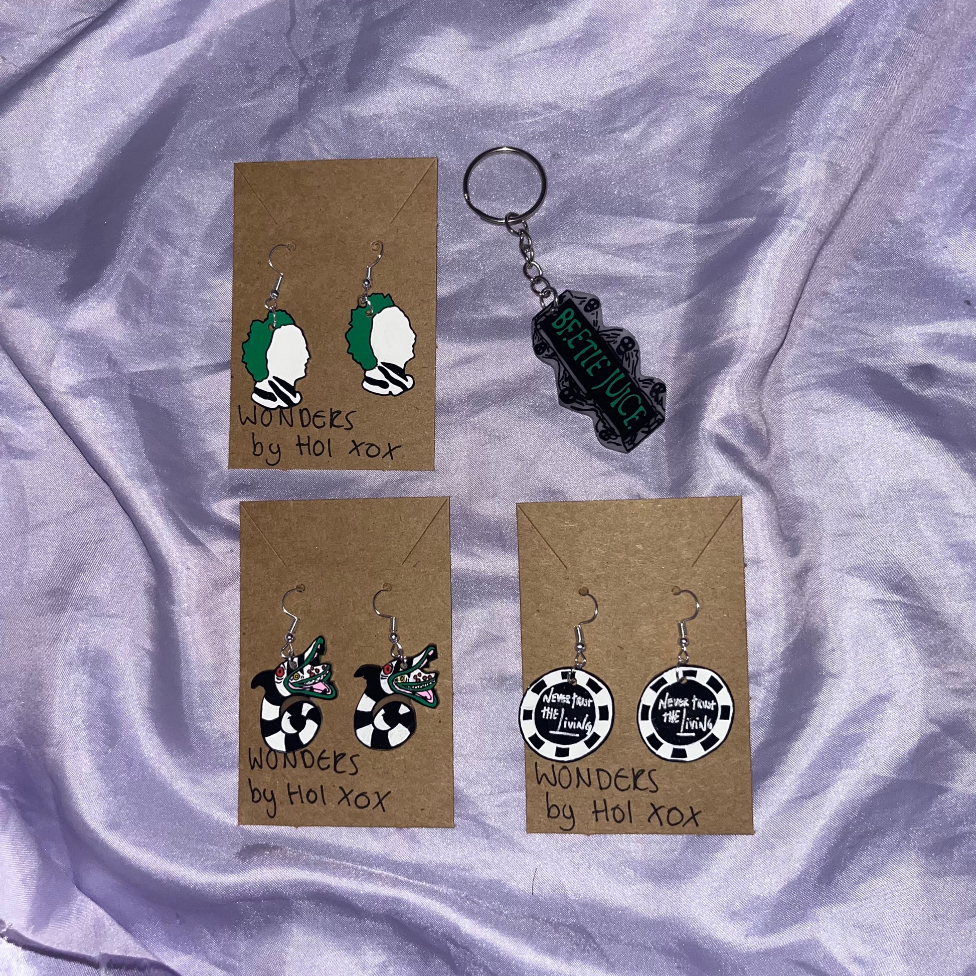 These earrings and keyrings are hand drawn so each one is unique! Each one is made to order! They are made with shrinky dink plastic and posca pens.