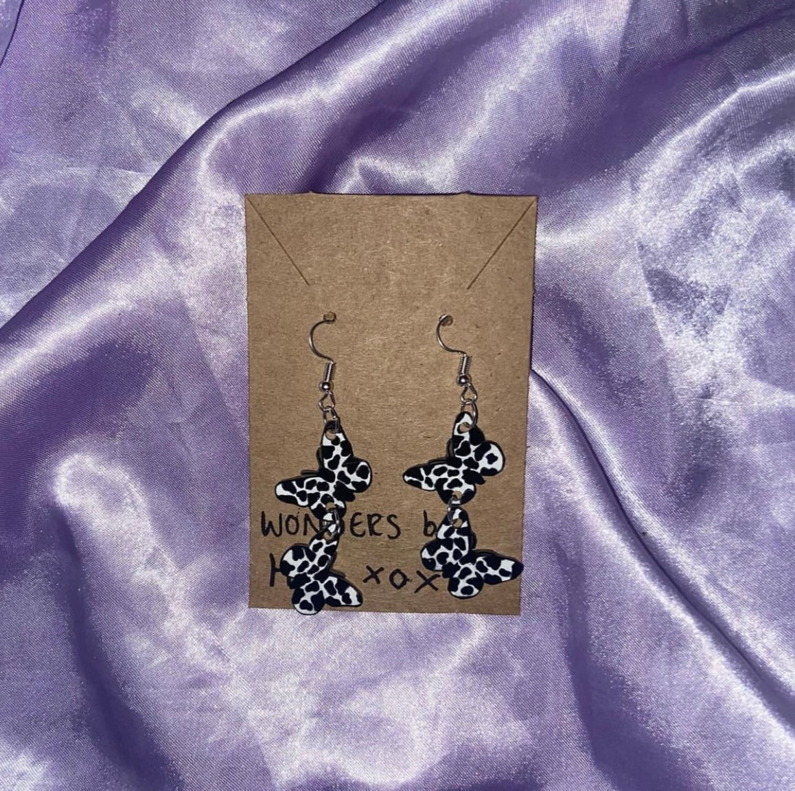 These earrings are hand drawn so each one is unique! Each one is made to order! They are made with shrinky dink plastic and posca pens.