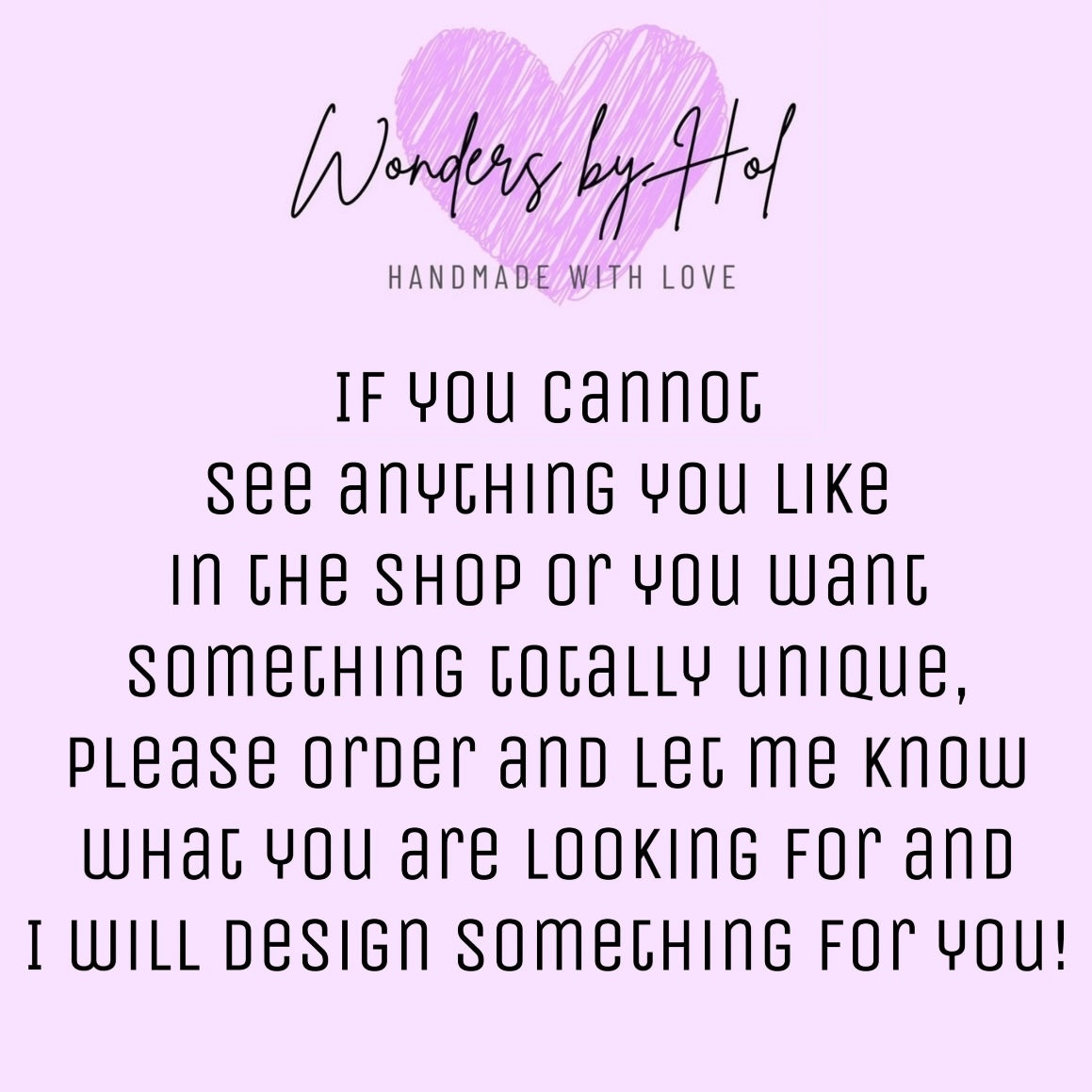 Can’t find anything you like in my shop? Or have a specific idea that you want to be brought to life? I can do that for you:)