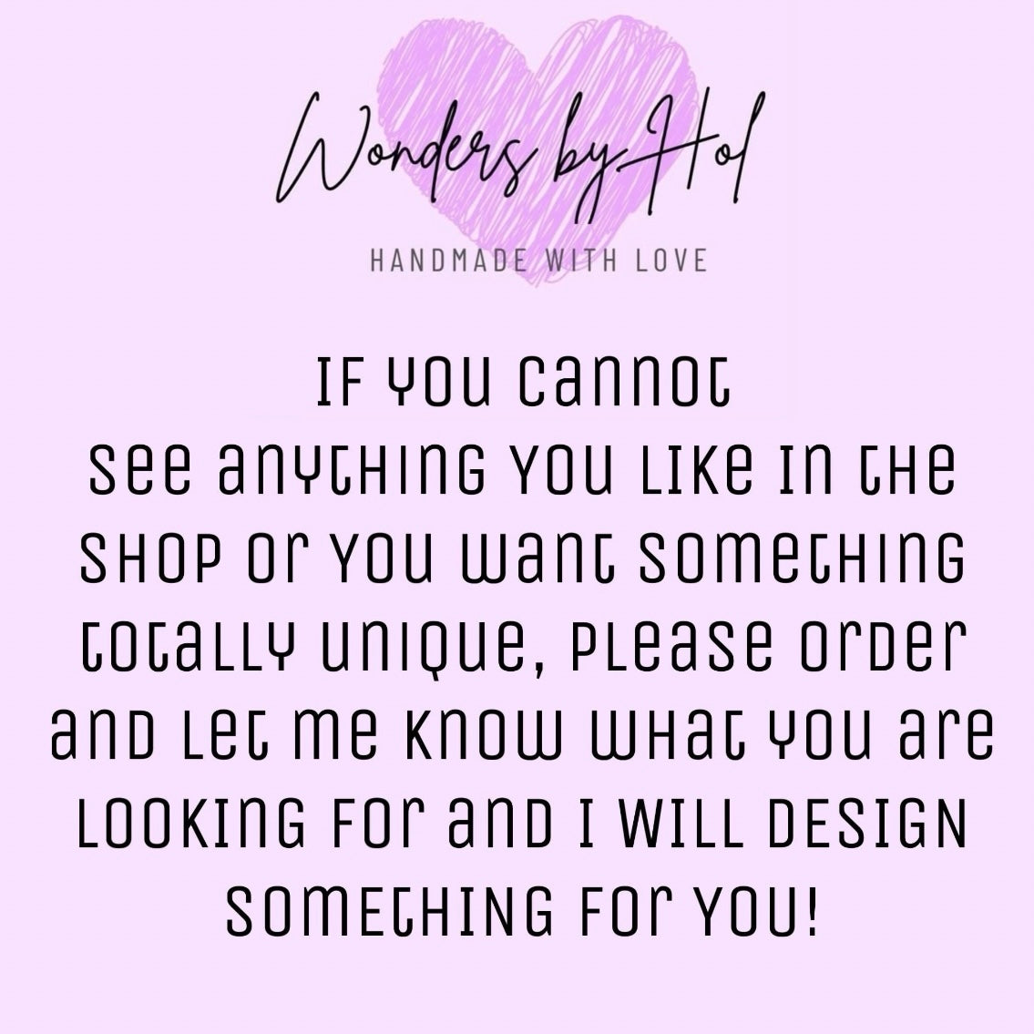 Can’t find anything you like in my shop? Or have a specific idea that you want to be brought to life? I can do that for you:)
