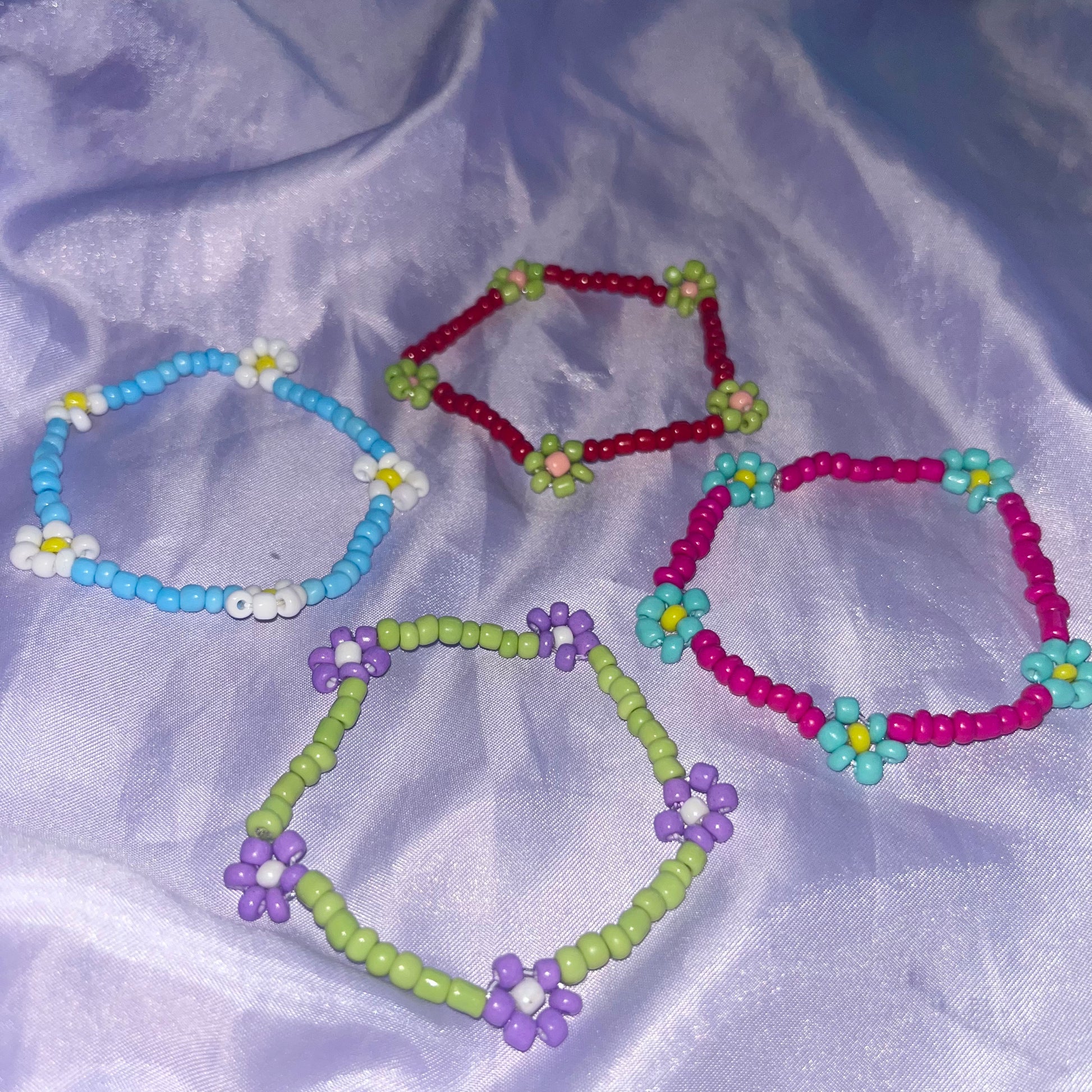 These bracelets are hand made so each one is unique! Each one is made to order! They are made with beads and jewellery string.