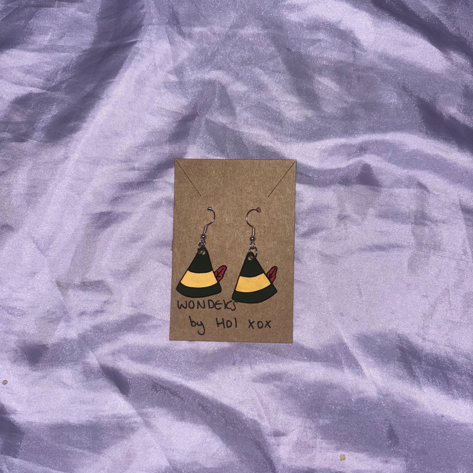 These earrings are hand drawn so each one is unique! Each one is made to order! They are made with shrinky dink plastic and posca pens.