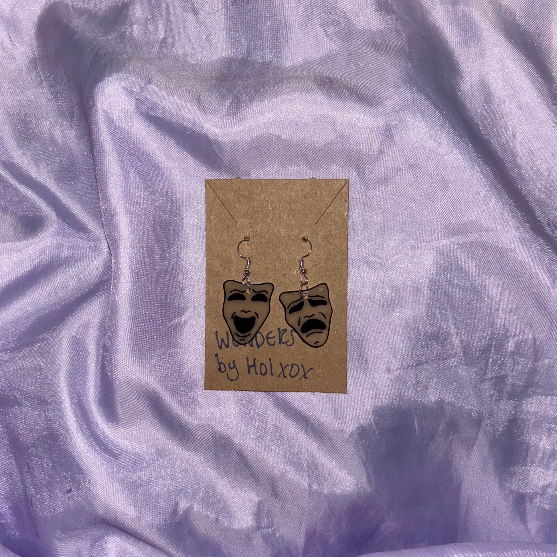 These are comedy and tragedy earrings, for the theatre and musical kids!